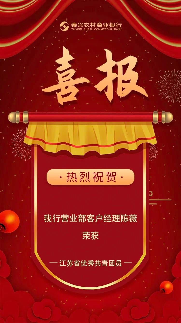 喜报:陈薇荣获“江苏省优秀共青团员”